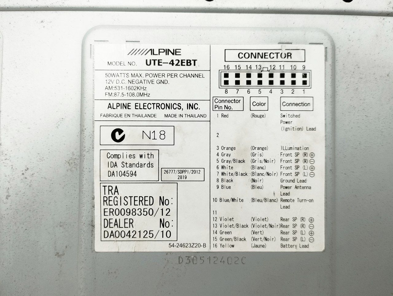 ضبط بلوتوث دار آلپاین مدل UTE-42EBT